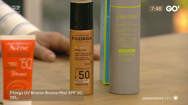 Hvis man har makeup på, kan det være svært at supplere med SPF i løbet af dagen. Hav altid en god ansigtsmist med SPF i tasken. Filorga er blandt de gode bud. Når det gælder kroppen, så er jeg begejstret for Shiseidos WetForce Mist, der med fugtmætning og antioxidanter er behagelig, bekvem og fin også til tyndhårede uden at fedte håret. Og kan bruges til både ansigt og krop.